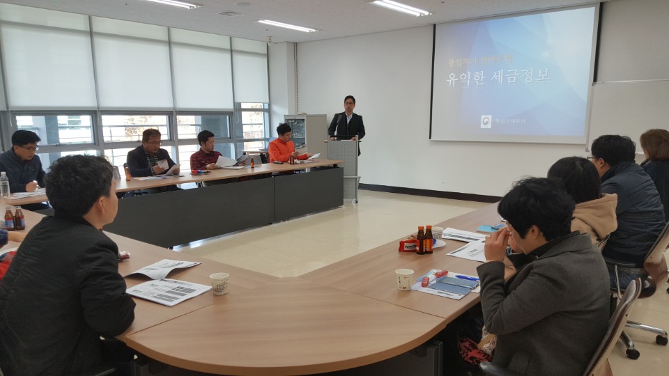 소통365 로봇산업진흥원 방문2017.11.15.(수) 북대구세무서(서장 고현호)는 영진전문대 창업보육센터를 방문하여 소통365 행사를 진행하였다.이 날 행사에서는 세금교육이 필요한 납세자를 대상으로 세금교육을 실시하고세금문제에 대한 포괄적인 상담서비스를 제공하였다.