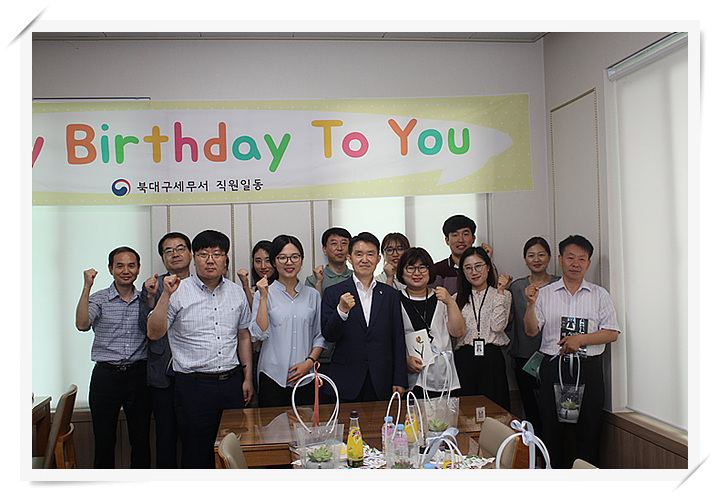 2018. 6. 4. (월)북대구세무서(서장 고현호)는 5,6월 생일을 맞은 직원들을 축하하는 생일축하행사를 열었습니다.5월 종합소득세 신고기간이 끝난 후 서로의 생일을 축하하며 담소를 나눌 수 있는 소중한 시간이었습니다^^