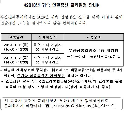 2018년 귀속 연말정산 교육일정 안내