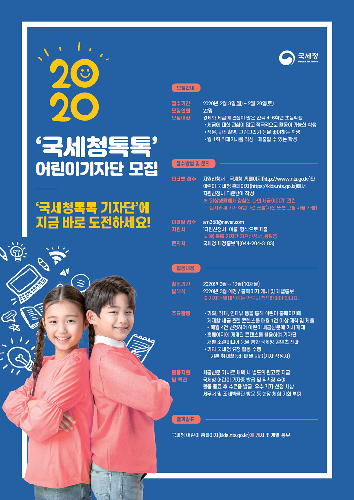 2020년 국세청톡톡 어린이기자단 모집