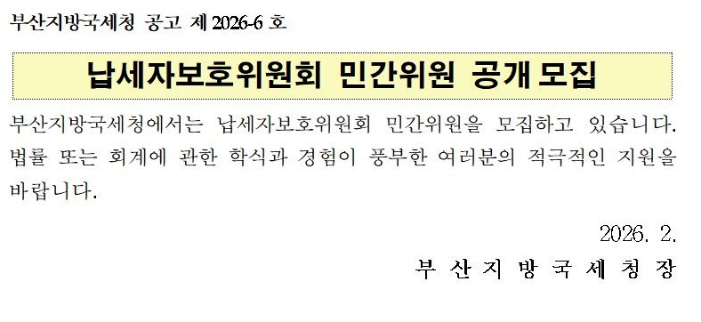 양산세무서 「국세심사위원회」민간위원 공개모집