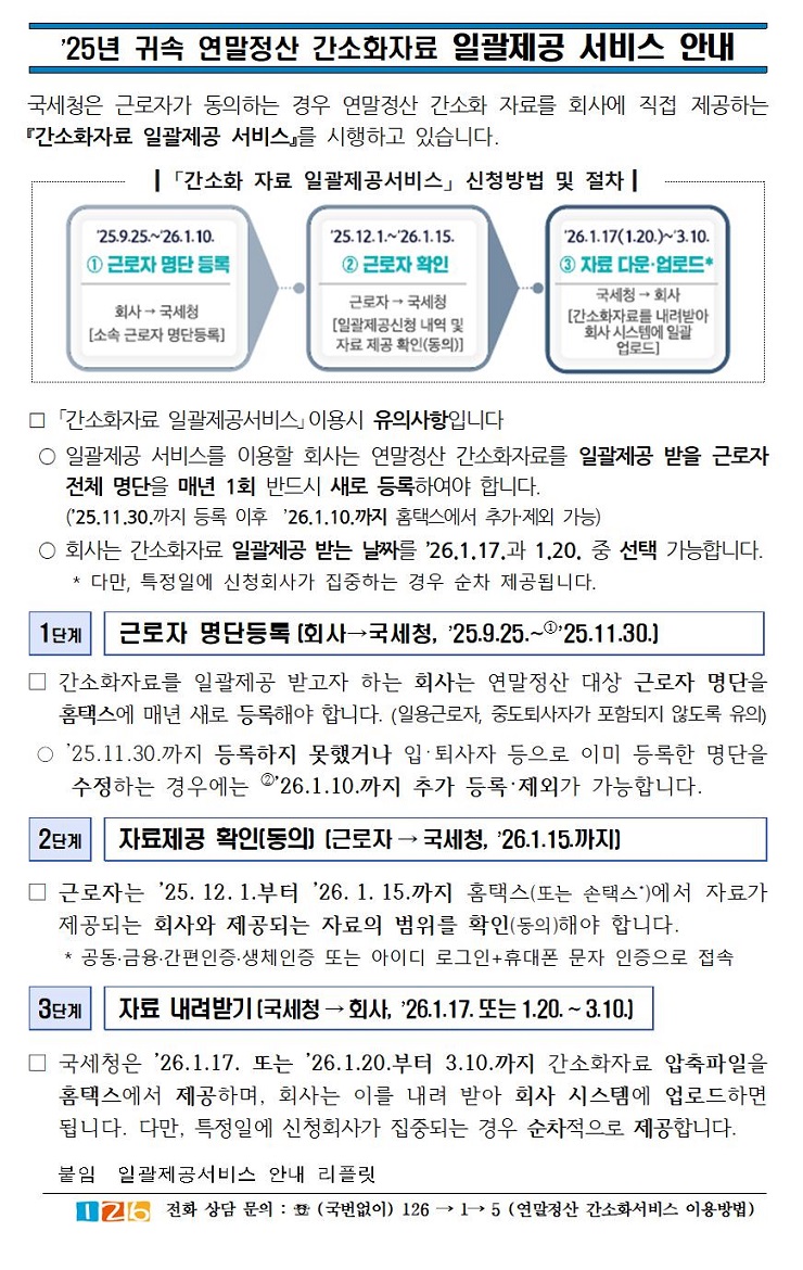 2025 귀속 연말정산 간소화자료 일괄제공 서비스 안내