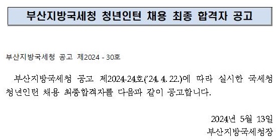 부산지방국세청 청년인턴 최종 합격자 공고문.hwp