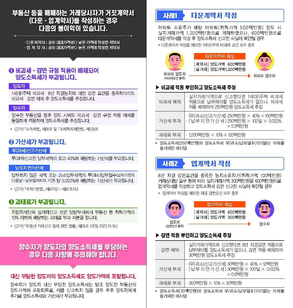 거짓 계약서 작성 시 양도소득세 비과세·감면 배제 안내
