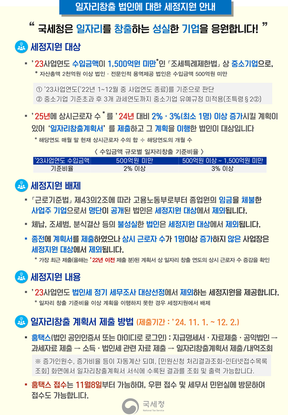 일자리창출 법인에 대한 세정지원 안내