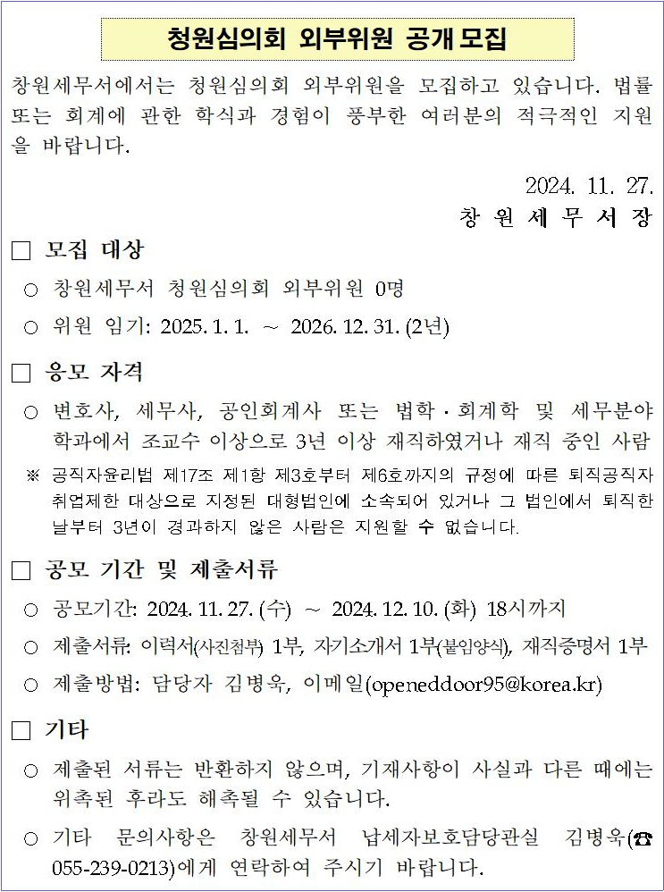 2025년 청원심의회 외부위원 공개모집 서식(이력서, 자기소개서).hwpx