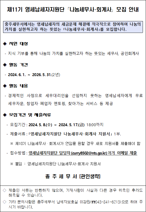 제11기 영세납세자지원단 모집안내문
