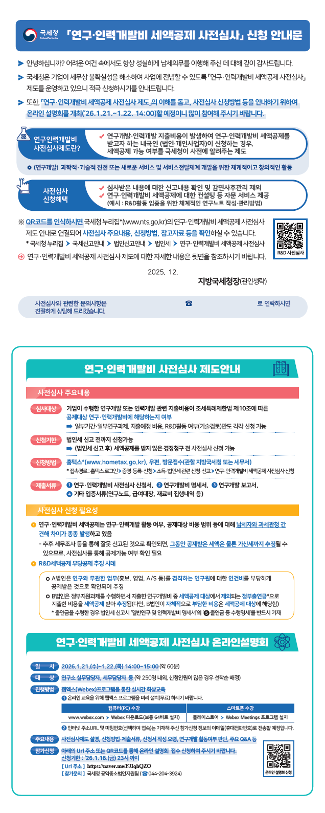 「연구・인력개발비 세액공제 사전심사」 및 「법인세 공제・감면 컨설팅」 제도 안내