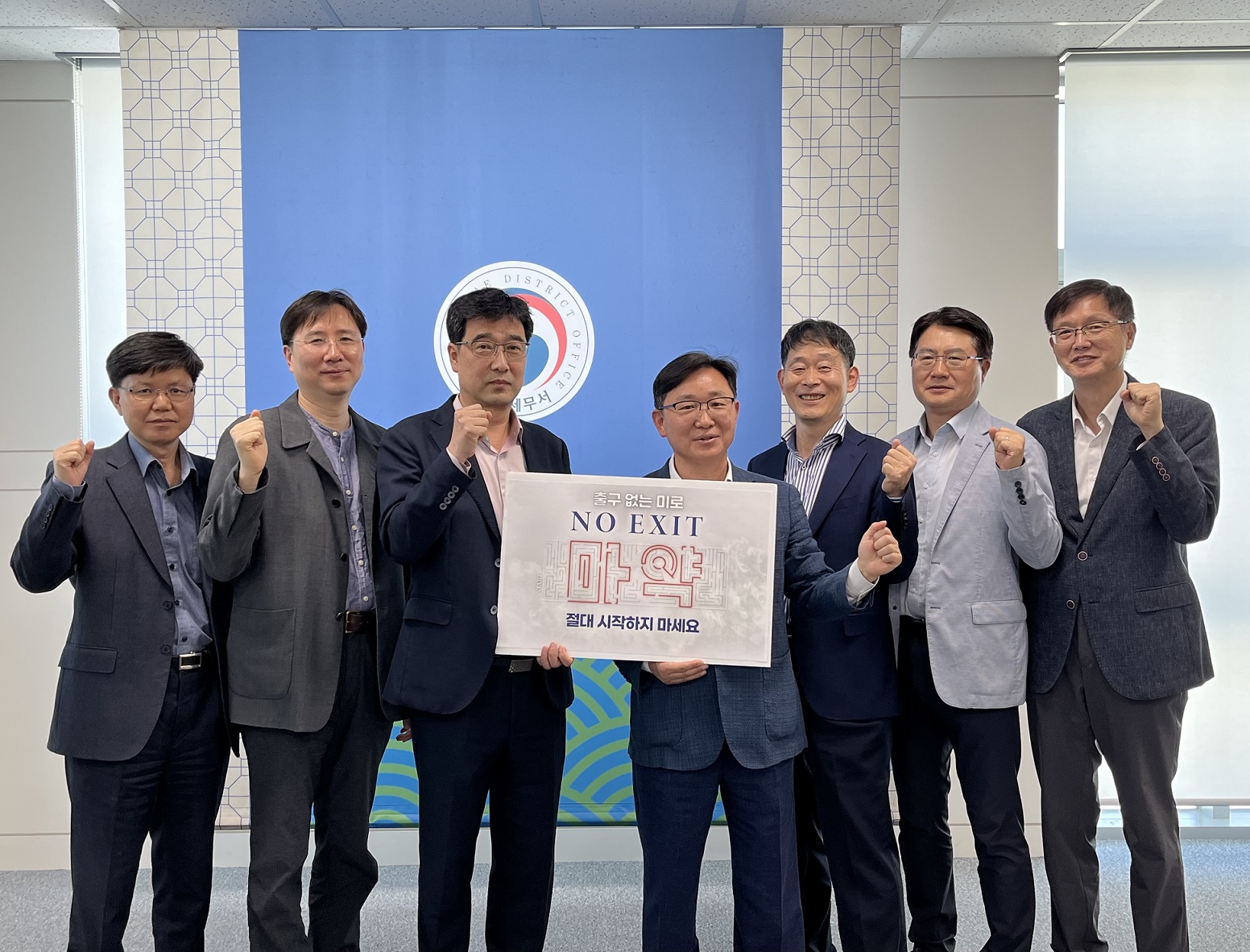 동래세무서 김호현 서장이 31일 마약으로부터 안전한 사회를 만들겠다는 의지를 담아 '출구 없는 미로'(NO EXIT) 마약 범죄 예방 릴레이 캠페인에 참여했다.