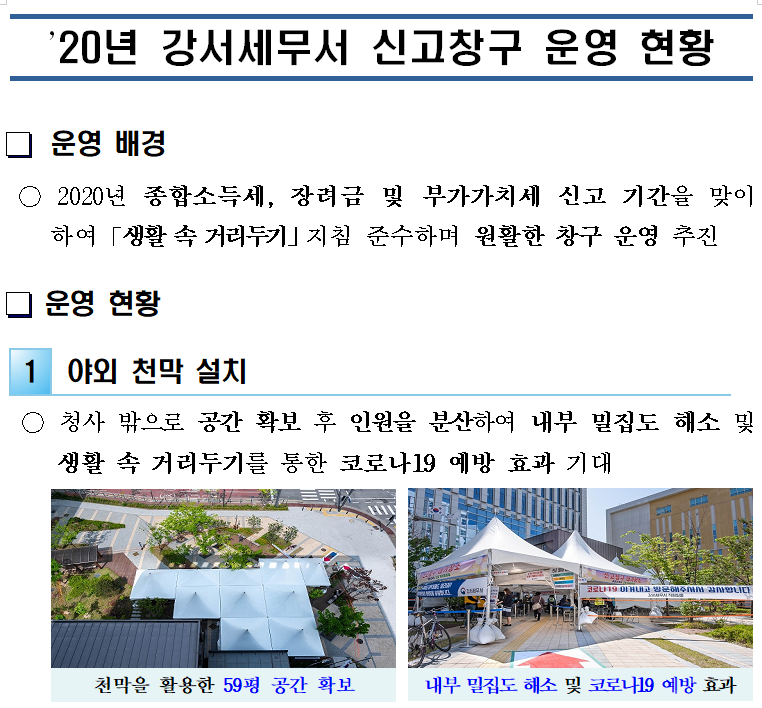 '20년 강서세무서 신고창구 운영 현황