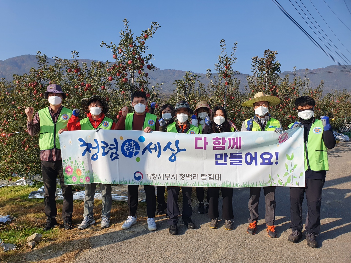 2021년 11월 4일 거창세무서(서장 최청흠) 직원들은 일손이 부족한 관내 사과농가를 방문하여 대민봉사활동을 하였습니다.