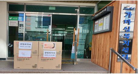이종현 서장은 코로나19확산에 따라 복지시설에 직접 방문이 어려운 점을 감안하여 비대면으로 물품만 전달하고