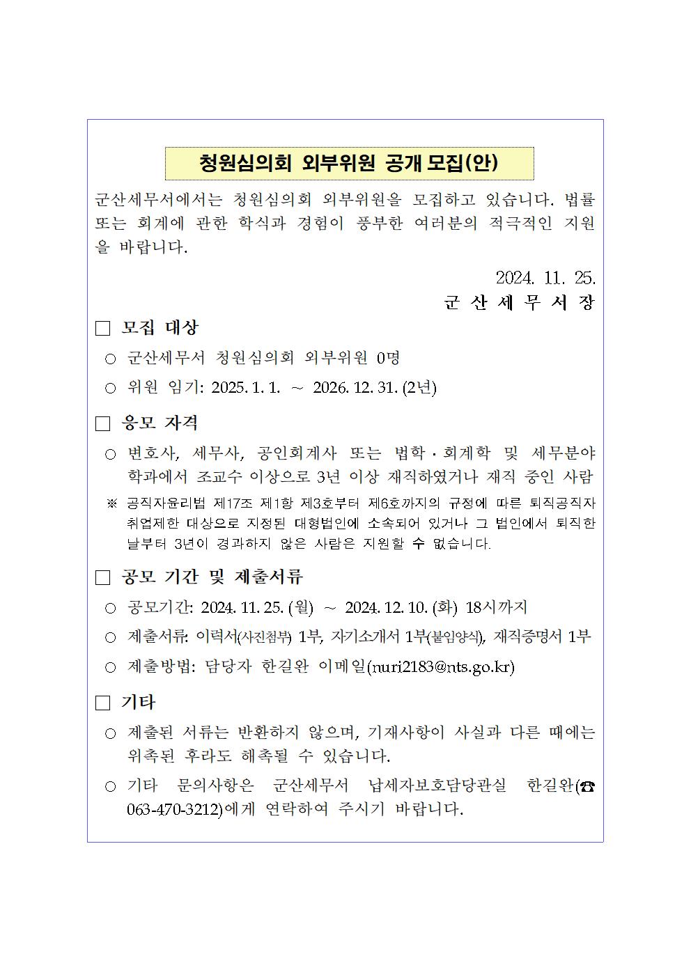 청원심의회 외부위원 공개 모집