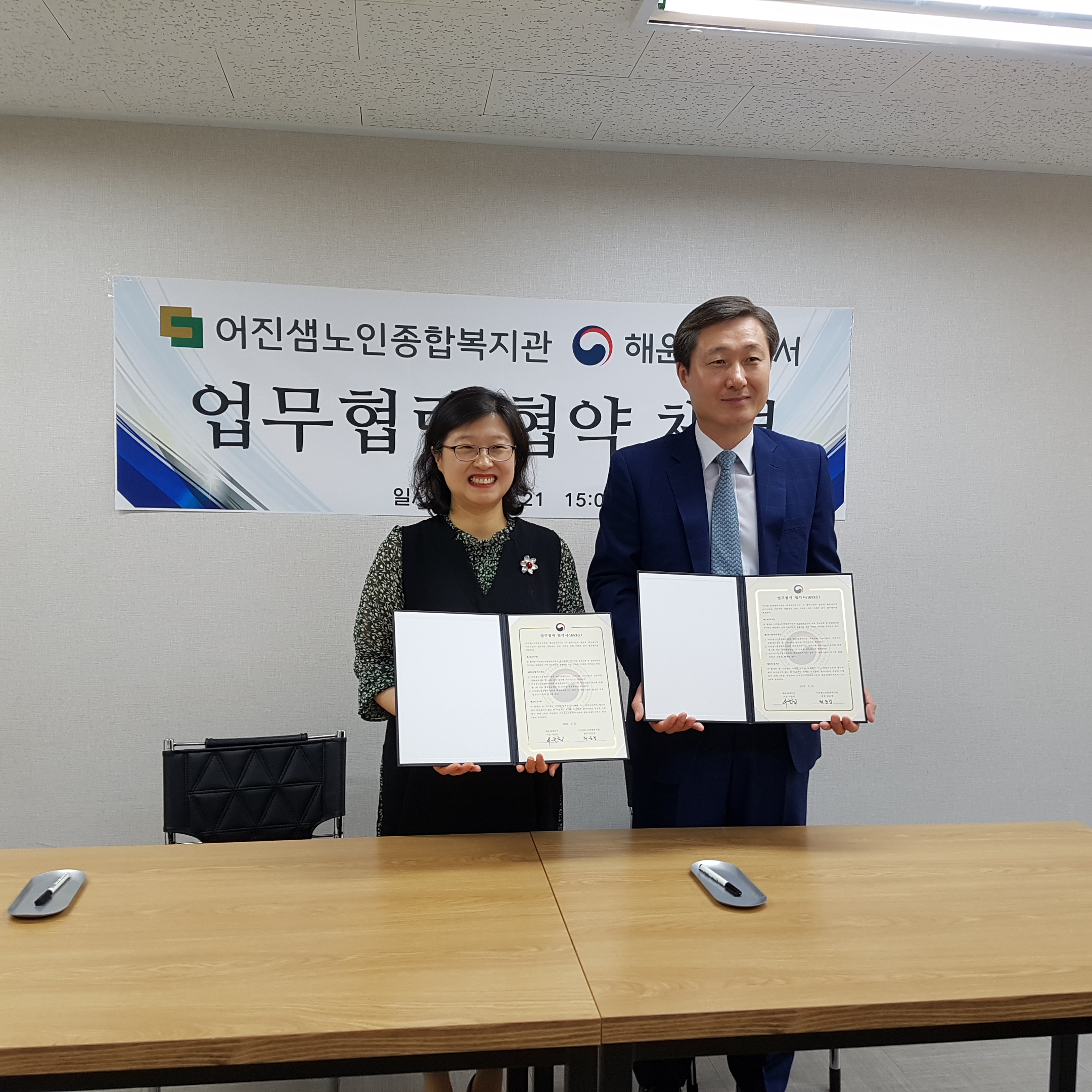 해운대세무서(서장 이준홍)는 2019.05.21.(화) 어진샘노인종합복지관과 업무협력협약 체결식을 가졌습니다. 앞으로도 관내 기관들과의 지속적인 협력을 통해 희망나눔을 실천하는 해운대세무서가 되겠습니다.