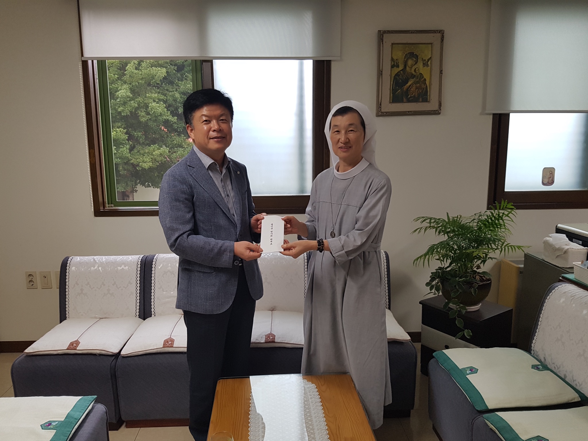 해운대세무서(서장 이준홍)는 추석을 맞아 관내 위문기관에 성금을 전달하였습니다.앞으로도 지속적인 사회공헌으로 희망나눔을 실천하는 해운대세무서가 되겠습니다.<박애원에 성금을 전하고 있는 백선기 운영지원과장과 손연숙 해운대세무서 봉사동아리 가온 회장><아이들의 집에 성금을 전하고 있는 권영록 재산법인납세과장><성현원에 성금을 전하고 있는 정영덕 조사과장과 손연숙 해운대세무서 봉사동아리 가온 회장>