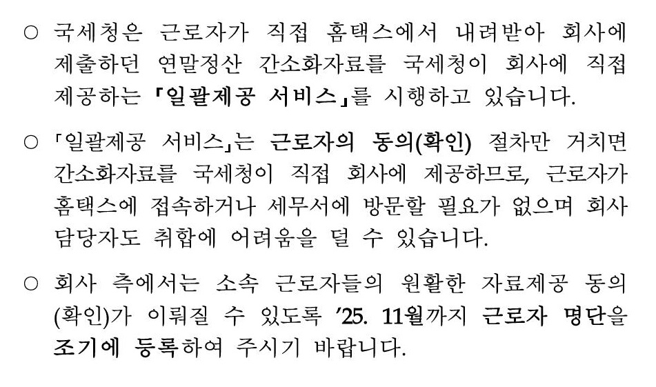 연말정산 간소화자료 일괄제공 서비스 안내