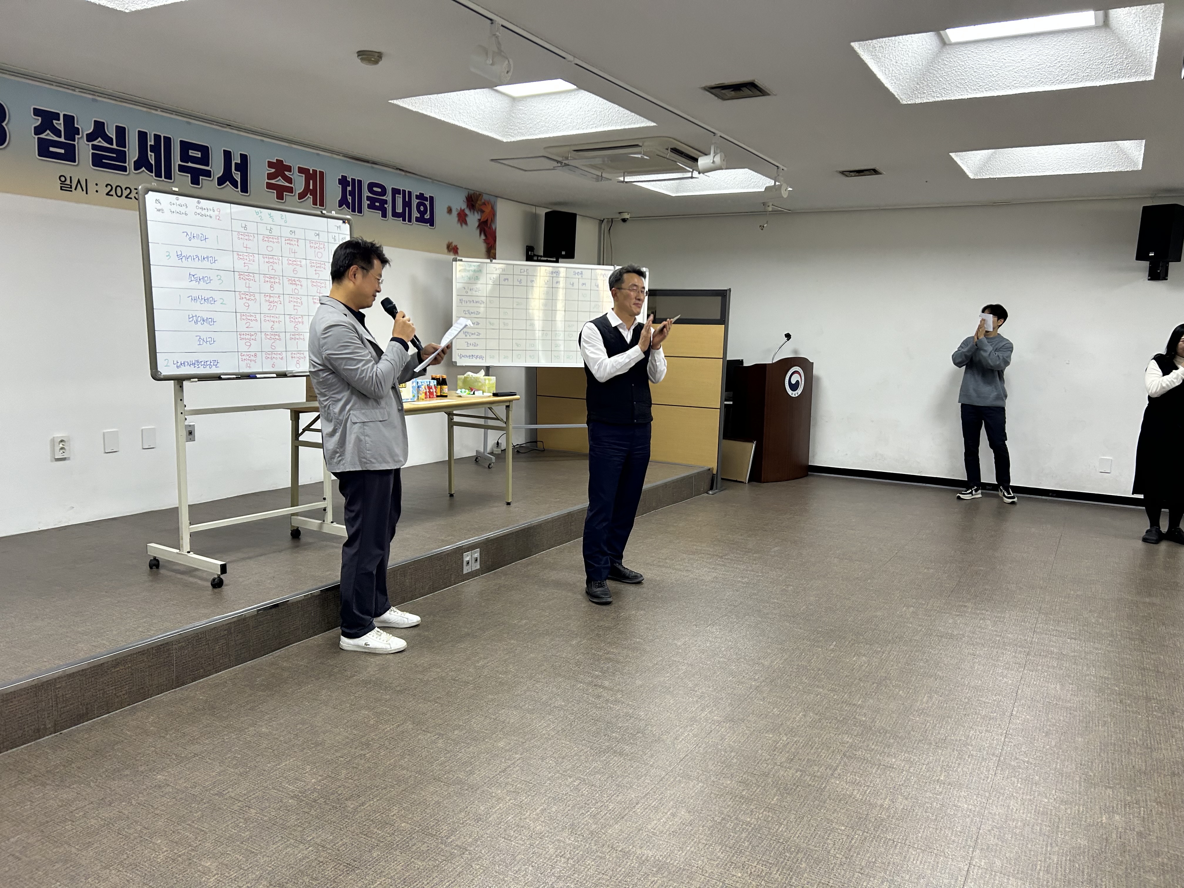 잠실세무서는 11.6.(월)~11.10.(금) 점심시간을 이용하여 대회의실에서 추계체육대회를 진행하였습니다.