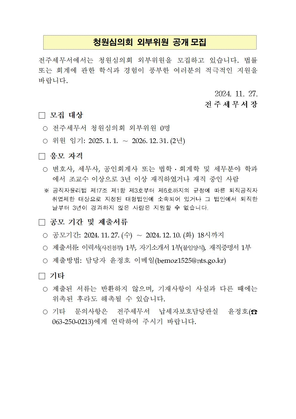 청원심의회 민간위원 모집 공고문