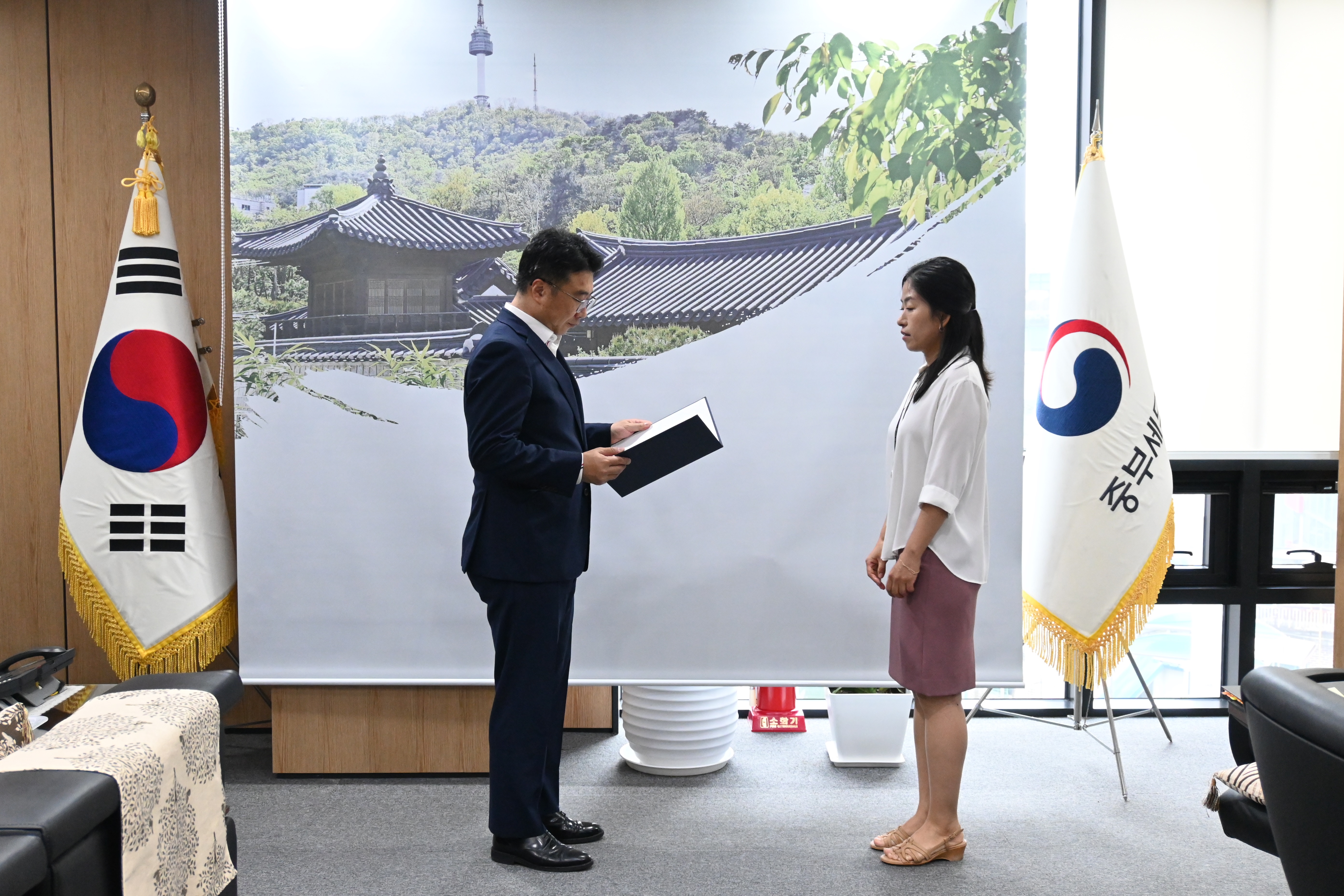 박성무 서장은 복직한 직원에게 따뜻한 환영인사를 전하며 최선을 다해달라고 격려하였습니다.