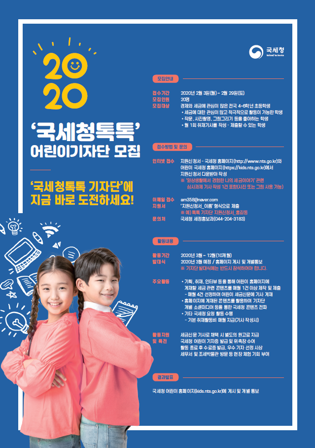 2020년 국세청톡톡 어린이기자단 모집안내