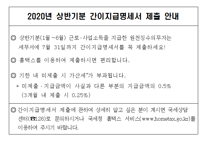 2020년 상반기분 간이지급명세서 제출 안내