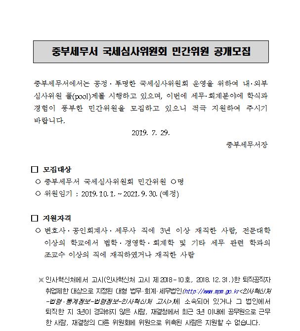 2019년 8월 [무료 세무상담창구] 상담일정 안내