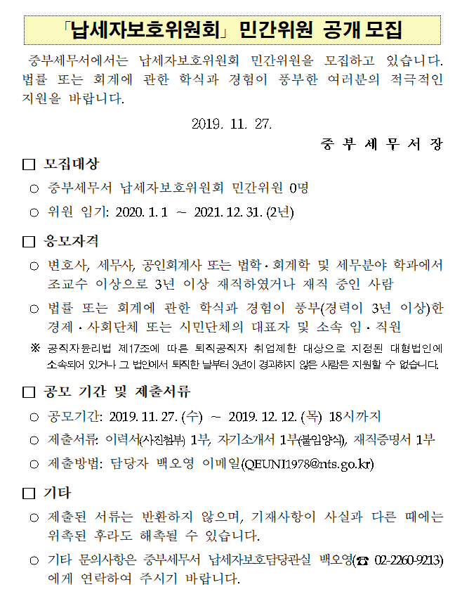 19년 근로ㆍ자녀장려금 수급자 대상 체험수기 공모전