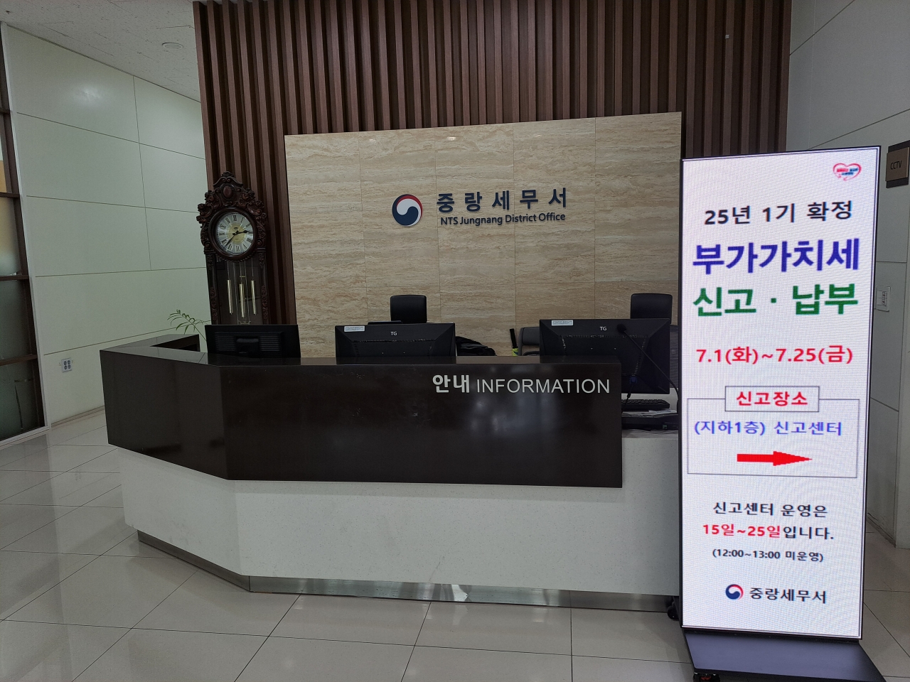 중랑세무서(서장 이철)는 2025년 1기 귀속 부가가치세 확정신고기간을 맞이하여 부가가치세 신고를 지원하고자 중랑세무서 지하 1층에 부가가치세 신고창구를 개설하였습니다.