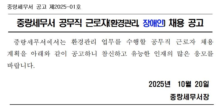 2025-01호 중랑세무서 공무직 근로자(환경관리) 채용공고.hwp