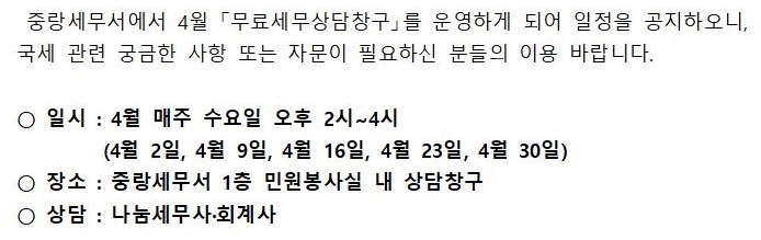 중랑세무서 납세자보호위원회 민간위원 모집공고