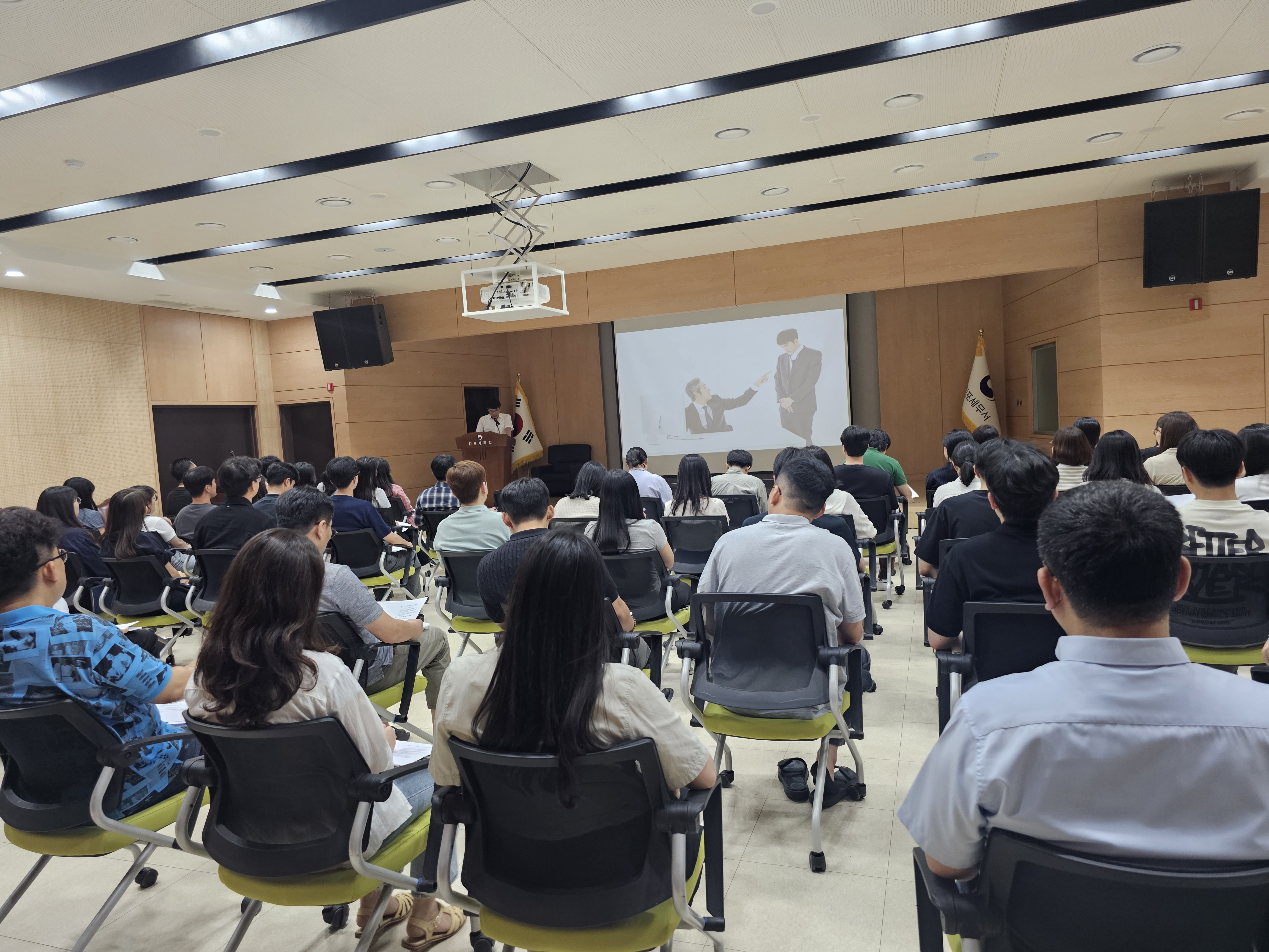 김포세무서(서장 김태수)는 지난 '25.7.10.(목) 15:00, 3층 대강당에서 8~9급 직원을 대상으로 하는 보고서 작성요령 교육을 실시하였습니다.