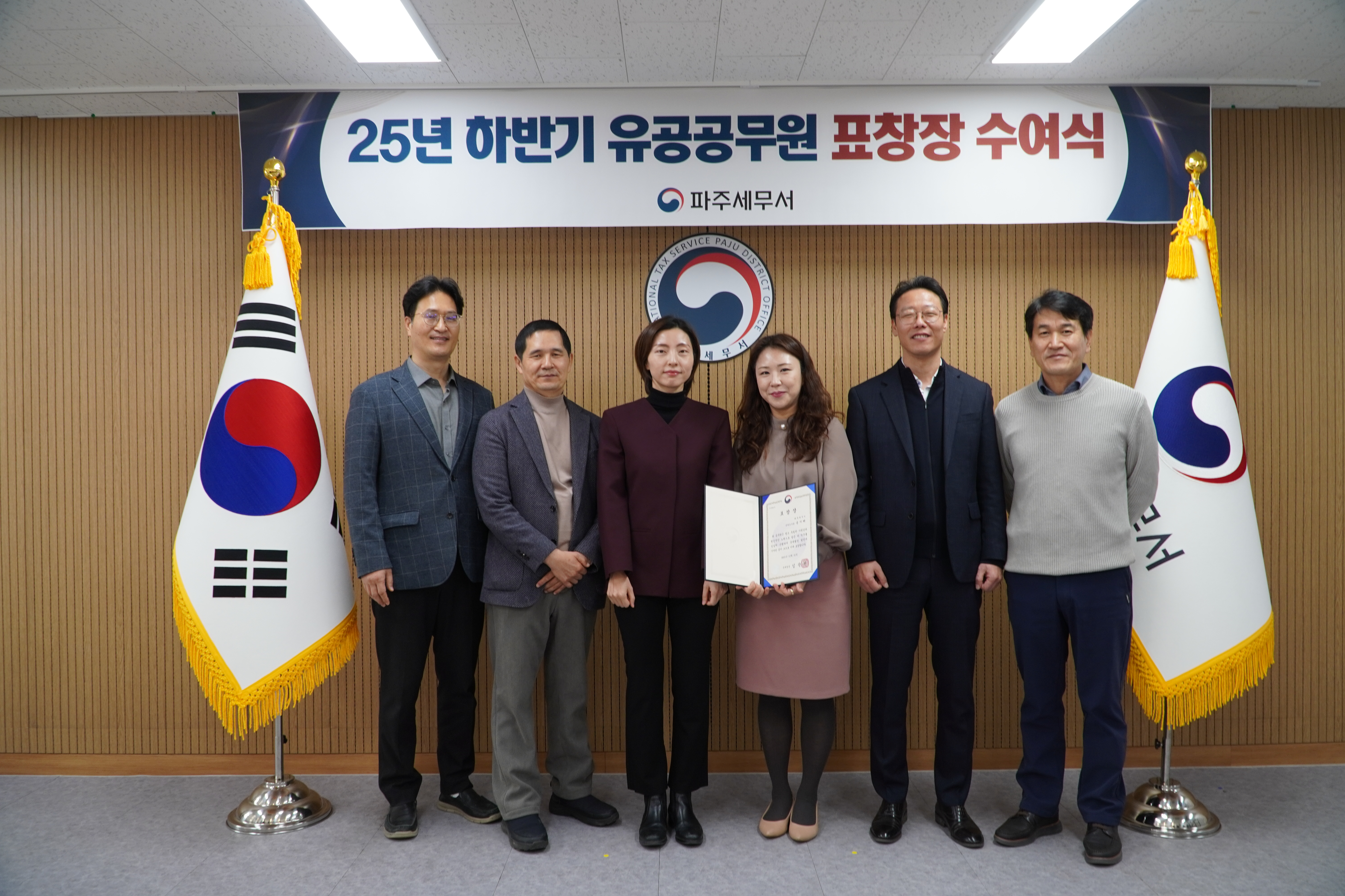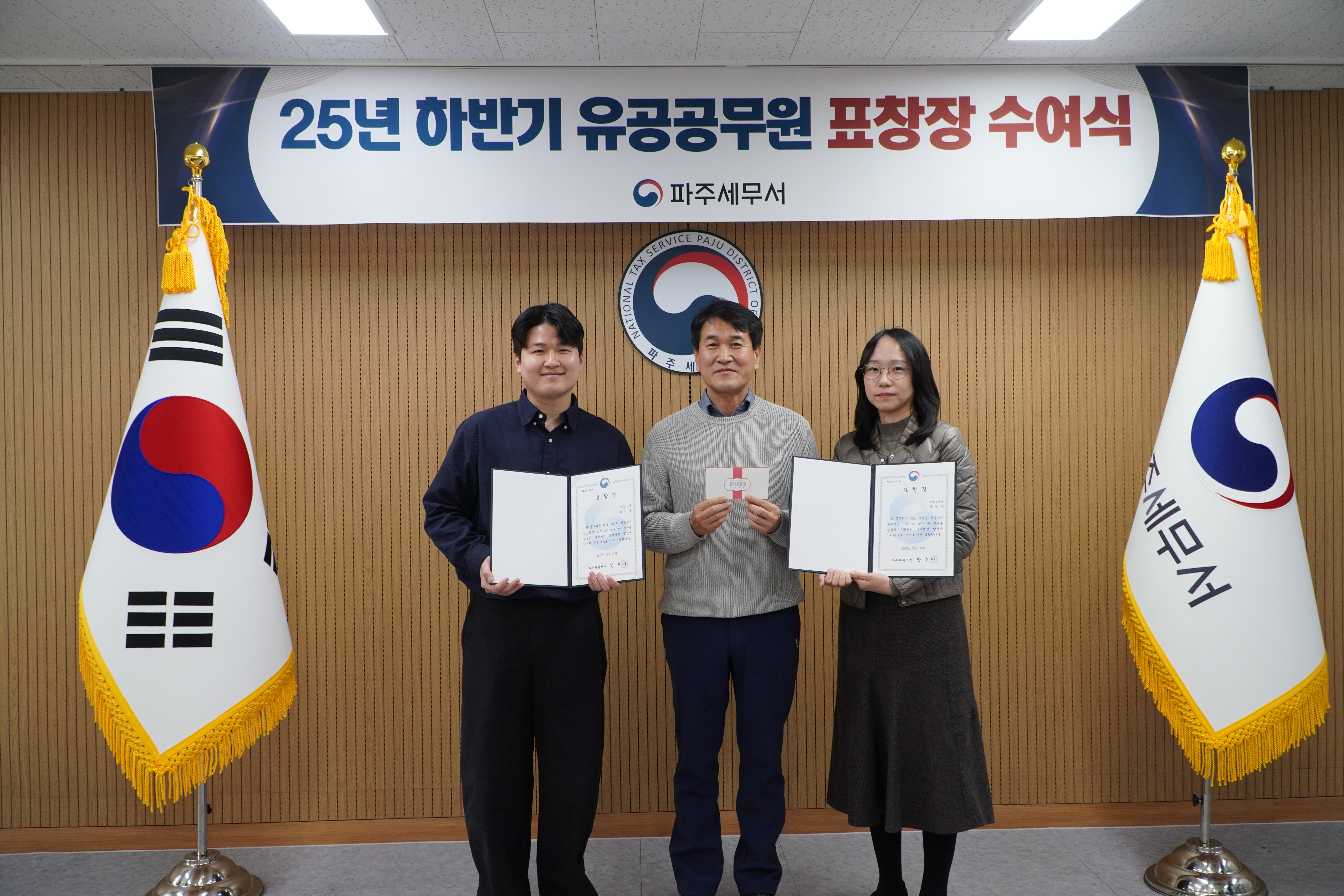 파주세무서(서장 안수아)는 2026.1.2.(금) 2025년 하반기 유공공무원 표창장 수여식을 거행하였습니다.