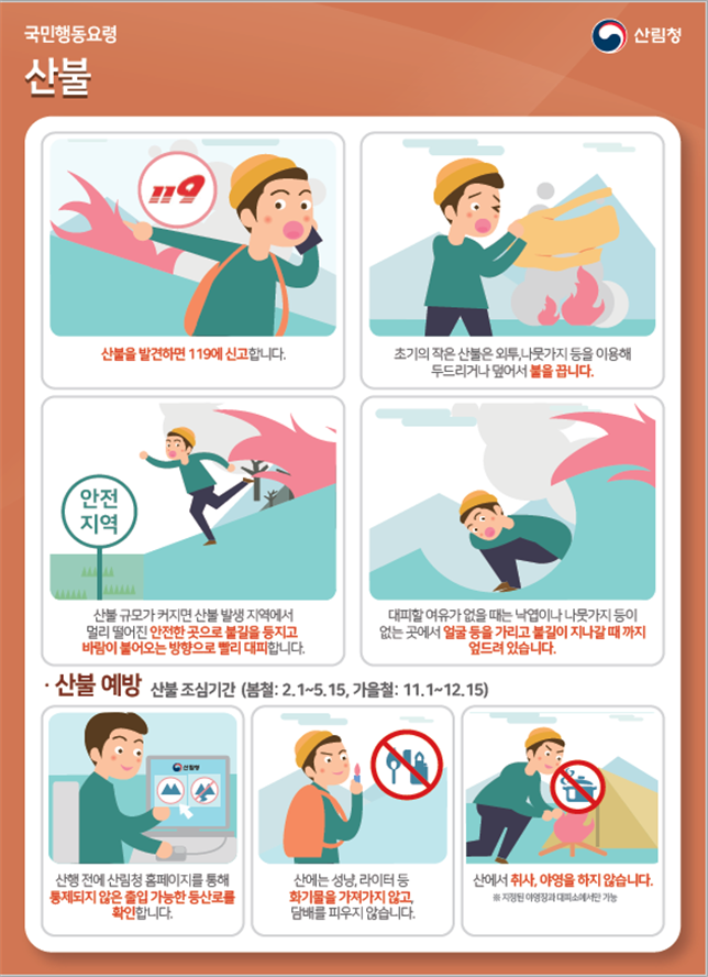 ⇒ 등산 시 인하물질 소지 금지, 하산 시 한번 남은 불씨 점검