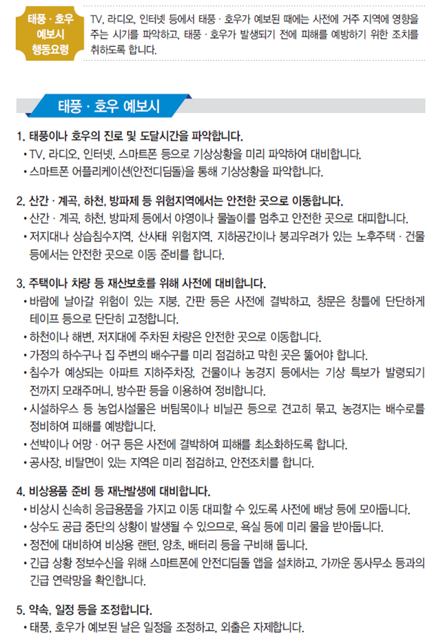 태풍호우 국민행동요령 [출처: 행정안전부]