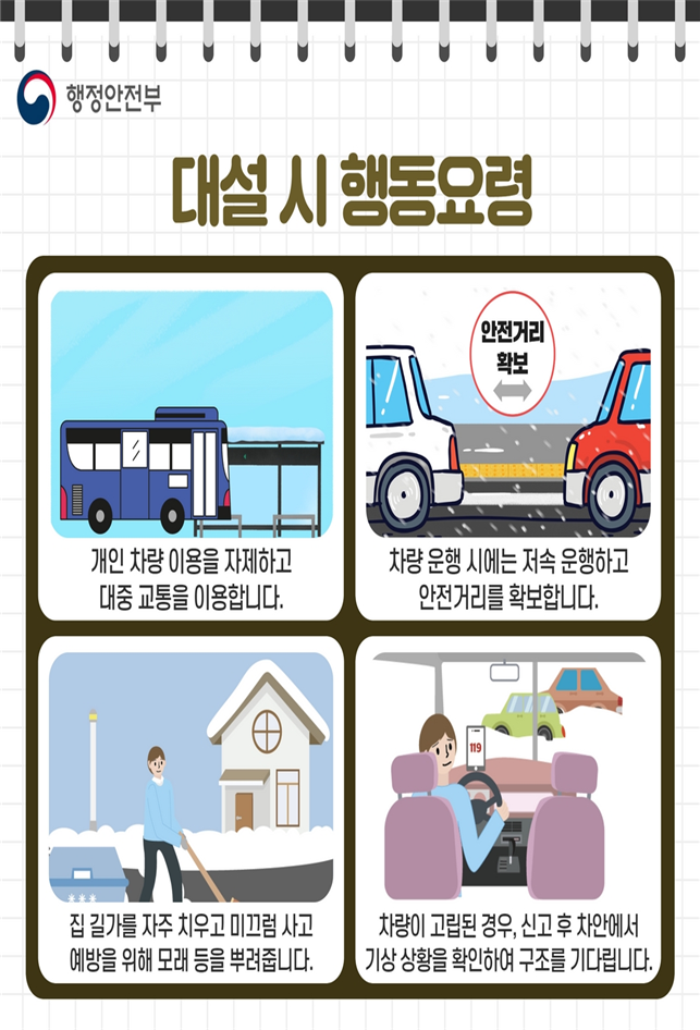 ○ 길 터주는 소방도로 우리안전 탄탄대로 ⇒ 골든타임 확보를 위한 주택가, 상습 차량정체구간 등에서 소방차·구급차 길 터주기 |