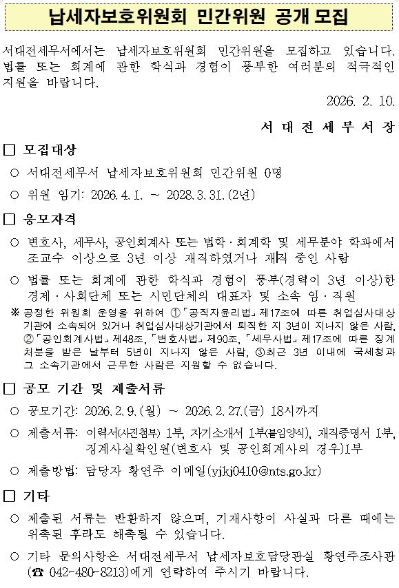 납세자보호위원회 민간위원 공개모집