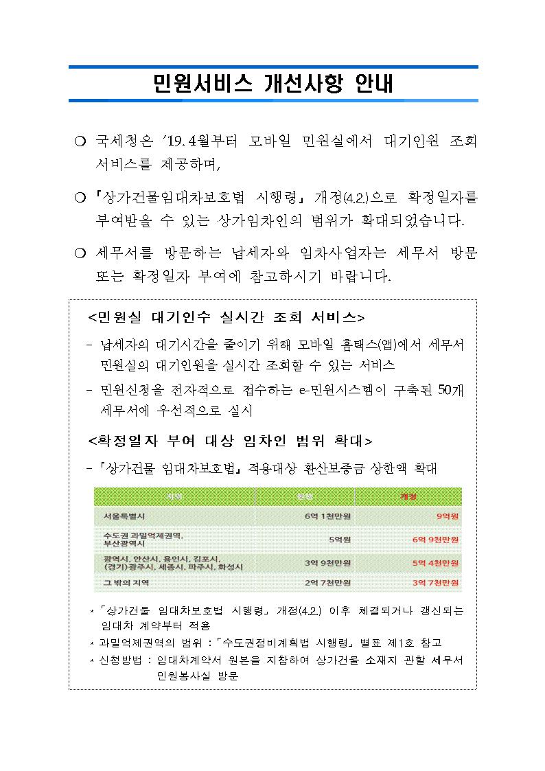 2019년 상반기 지역별 납세자세법교실 과정 안내