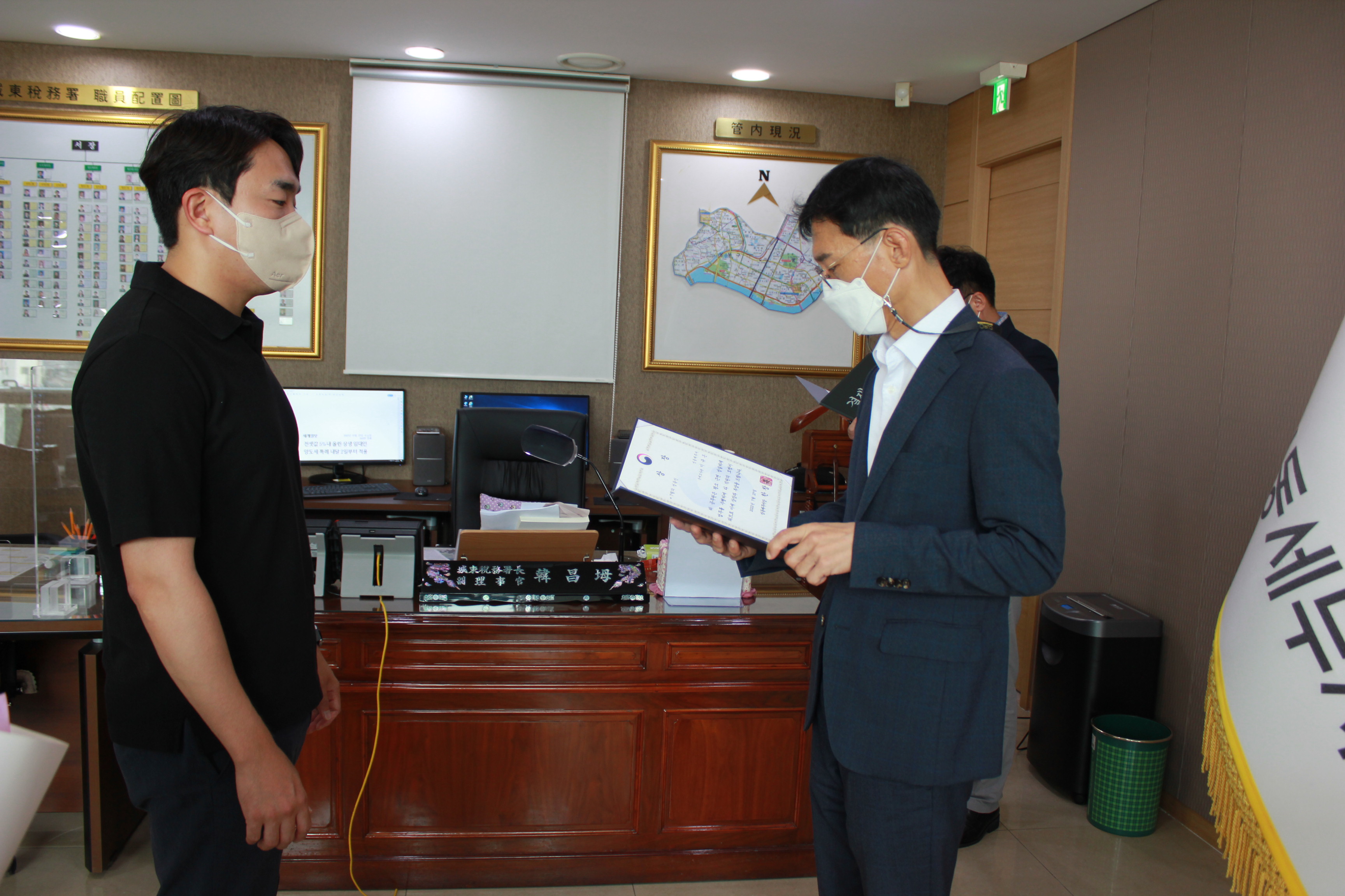 성동세무서장 한창목은 7.27.(수)에 이달의 성동인(모델 성동)을 선정하여 상장 및 부상을 수여하였습니다.