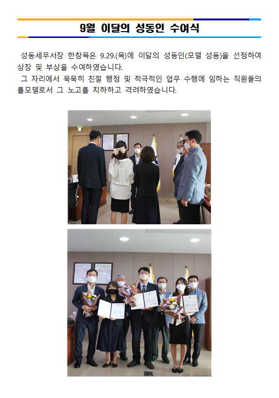 8월 이달의 성동인 수여식 및 성동세무서 적극행정 다짐 결의식