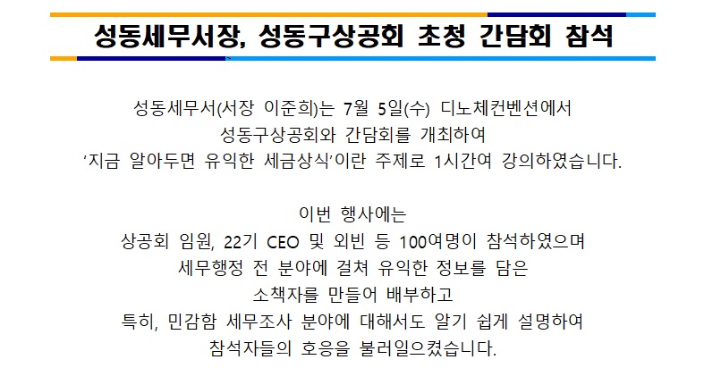 성동세무서장, 성동구상공회 초청 간담회 참석