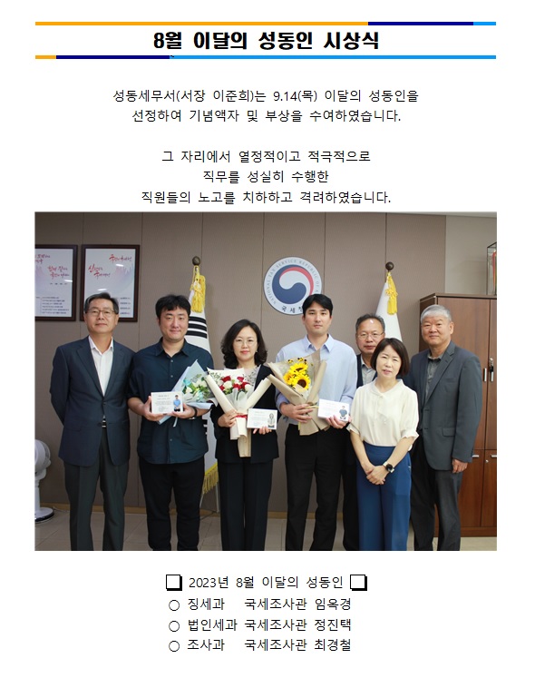 8월 이달의 성동인 시상식