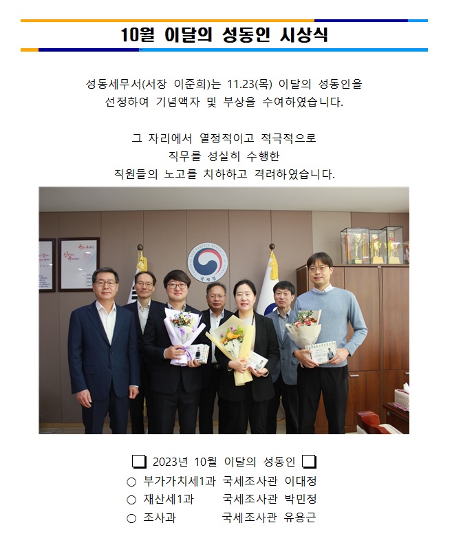10월 이달의 성동인 시상식