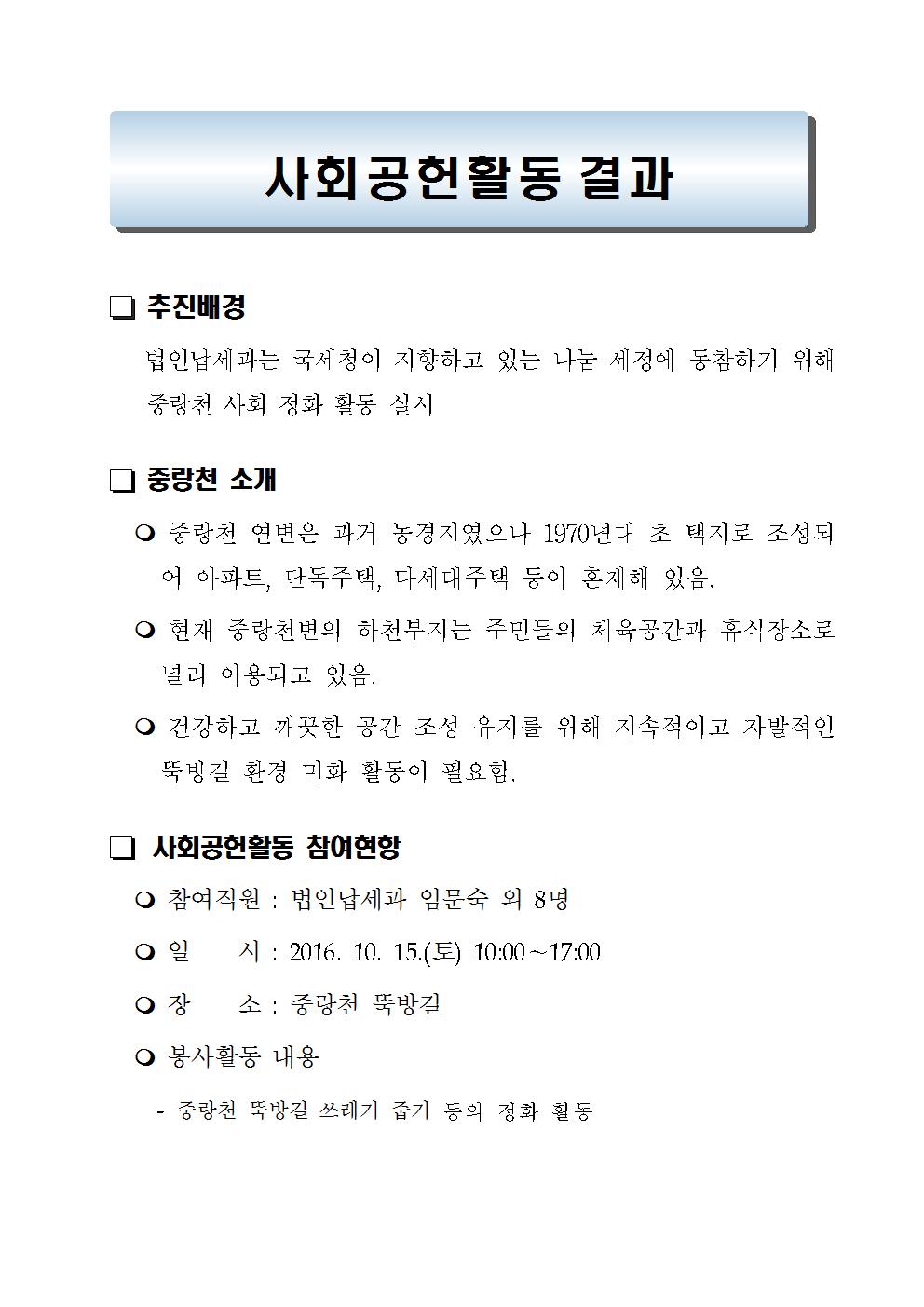법인납세과 2016년 하반기 사회공헌활동 소개