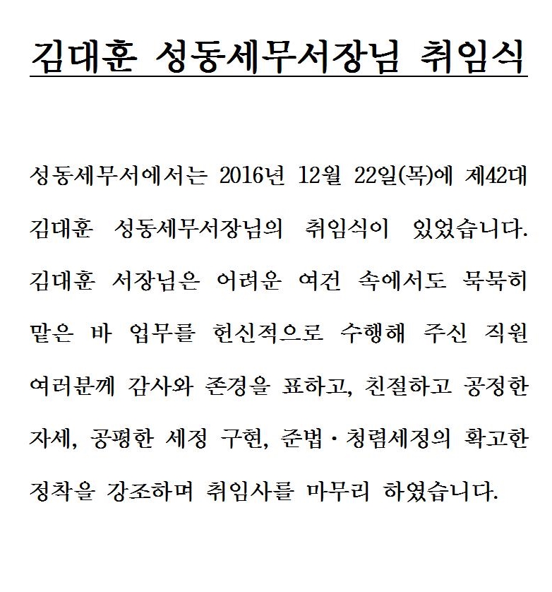 제42대 성동세무서장 취임식