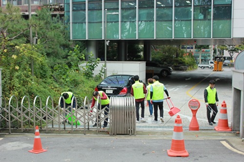 이른 아침 직원들이 솔선 수범하여 휴지· 쓰레기 등을 치우고 버려 청사 주변을 말끔하게 하였습니다.