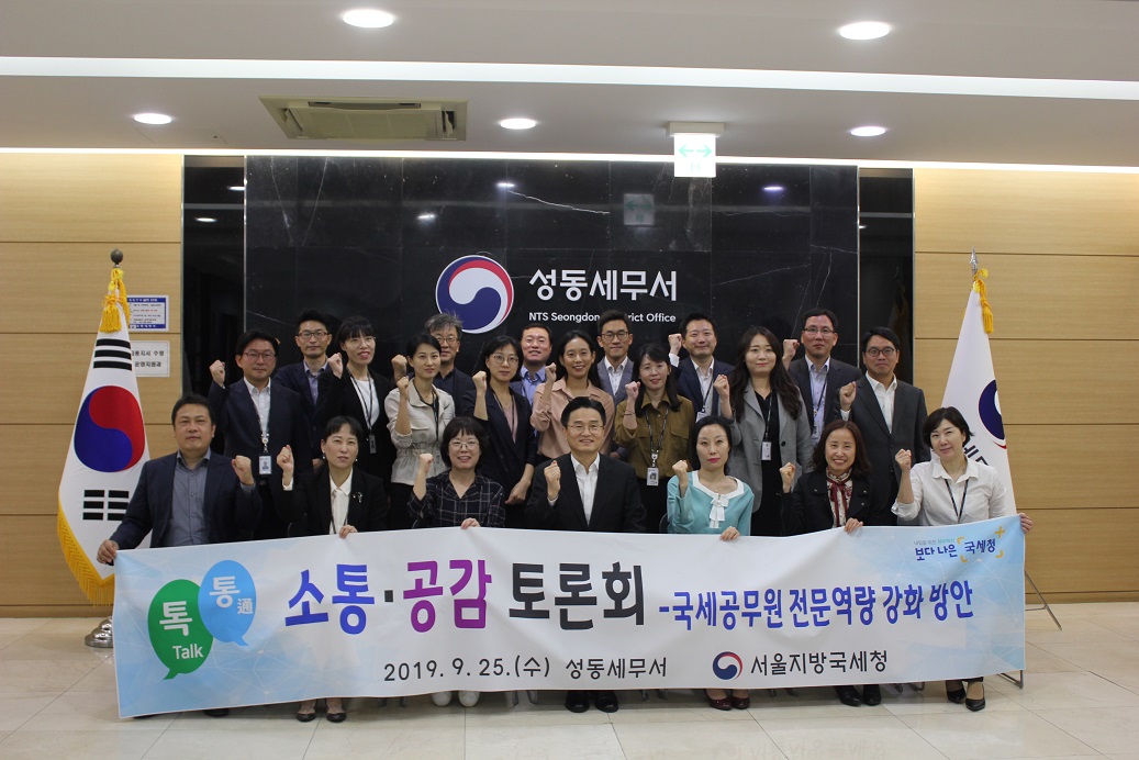 서울지방국세청(청장 김명준)은 9.25.(수) 오후 3시부터 성동세무서에서 일선 현장의 문제를 함께 고민하고 국세행정 발전 방안을 모색하기 위해「일선 현장과의 소통ㆍ공감 토론회」를 개최하였습니다.