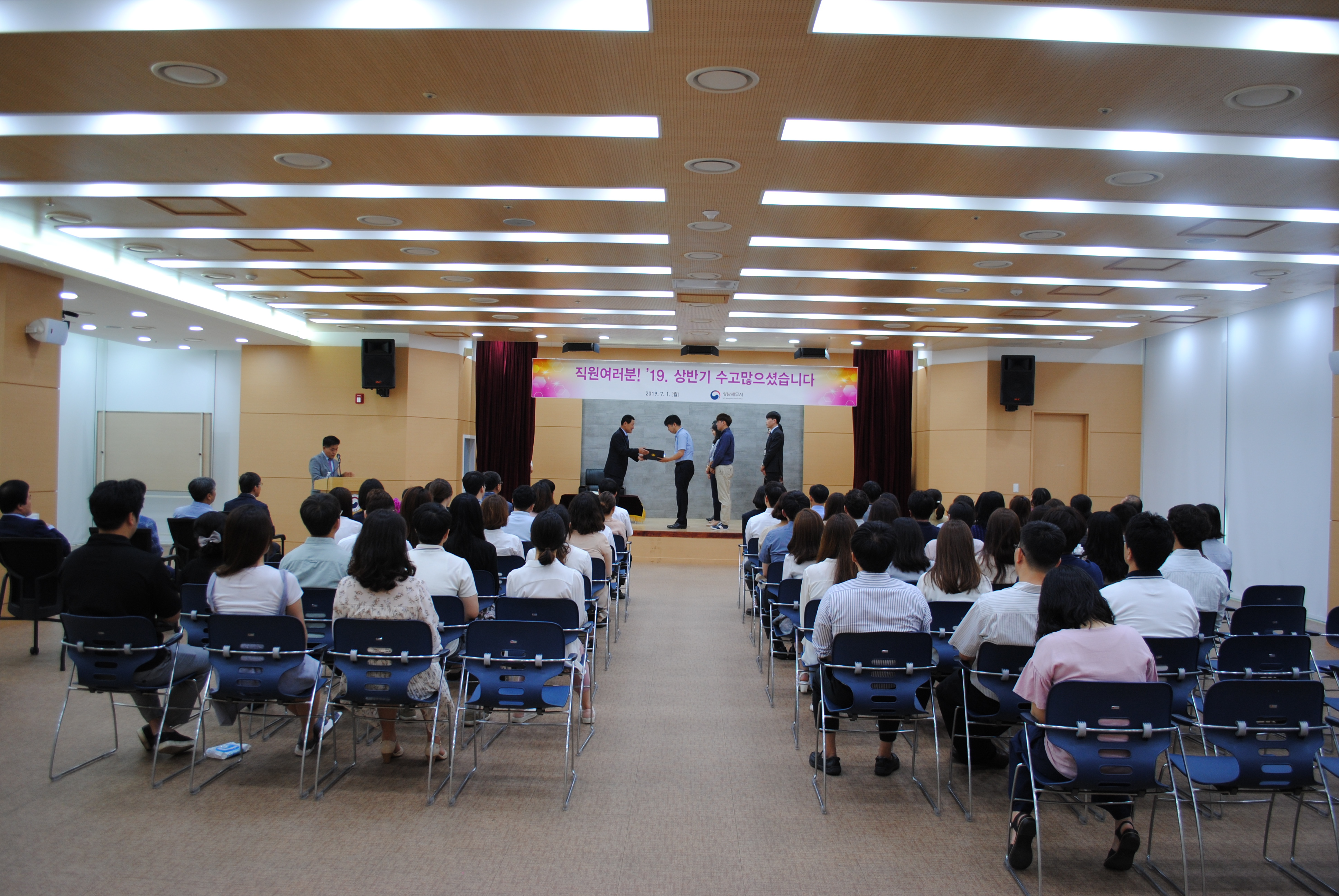 성남세무서(서장 박기현)는 7월1일(월) 2019년 상반기 유공공무원에 대한 표창장 수여식을 실시하였습니다. 이날 박기현 서장은 상반기 동안 고생한 전직원들의 노고를 치하하였으며, 하반기에도 성실하게 업무에 임하여 줄것을 당부하였습니다.▲유공공무원 표창 수여 모습