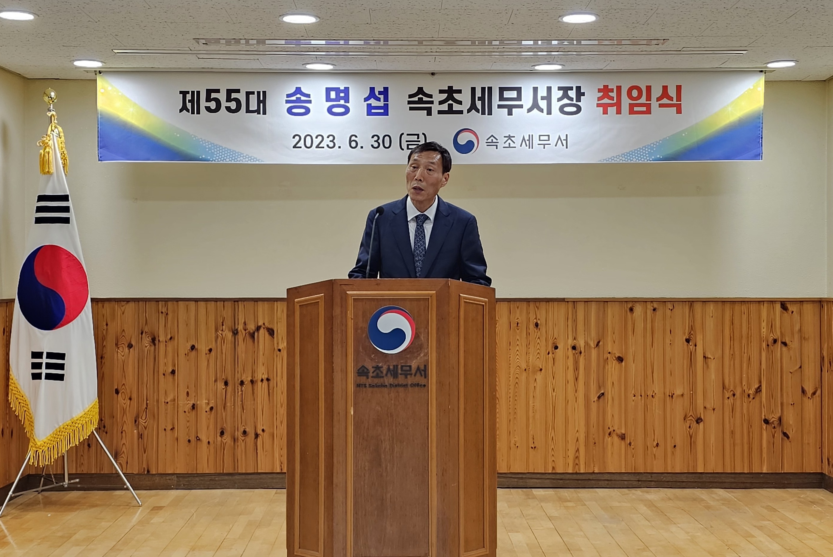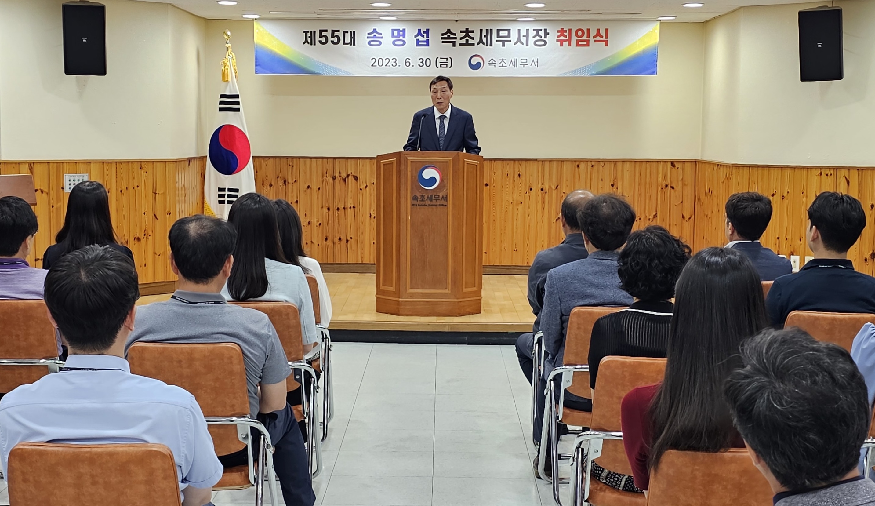 2023년 6월 30일(금) 속초세무서 대강당에서 제55대 송명섭 서장님의 취임식이 있었습니다.