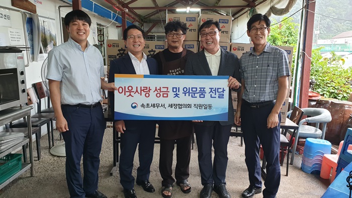 속초세무서(서장:김왕성), 세정협의회 직원일동은 2019년 9월 10일(화) 작은형제의 집(노숙인 및 독거노인 무료급식소)에 이웃사랑성금 및 위문품을 전달하였습니다