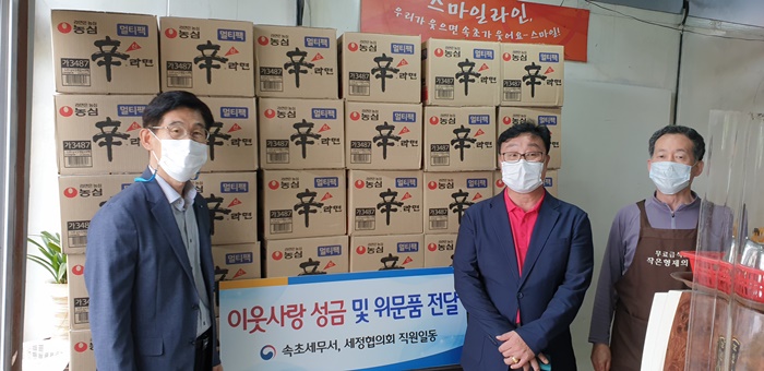 속초세무서(서장:장종식), 세정협의회 직원일동은 2020년 9월 24일(목) 작은형제의 집(노숙인 및 독거노인 무료급식소)에 이웃사랑성금 및 위문품을 전달하였습니다.
